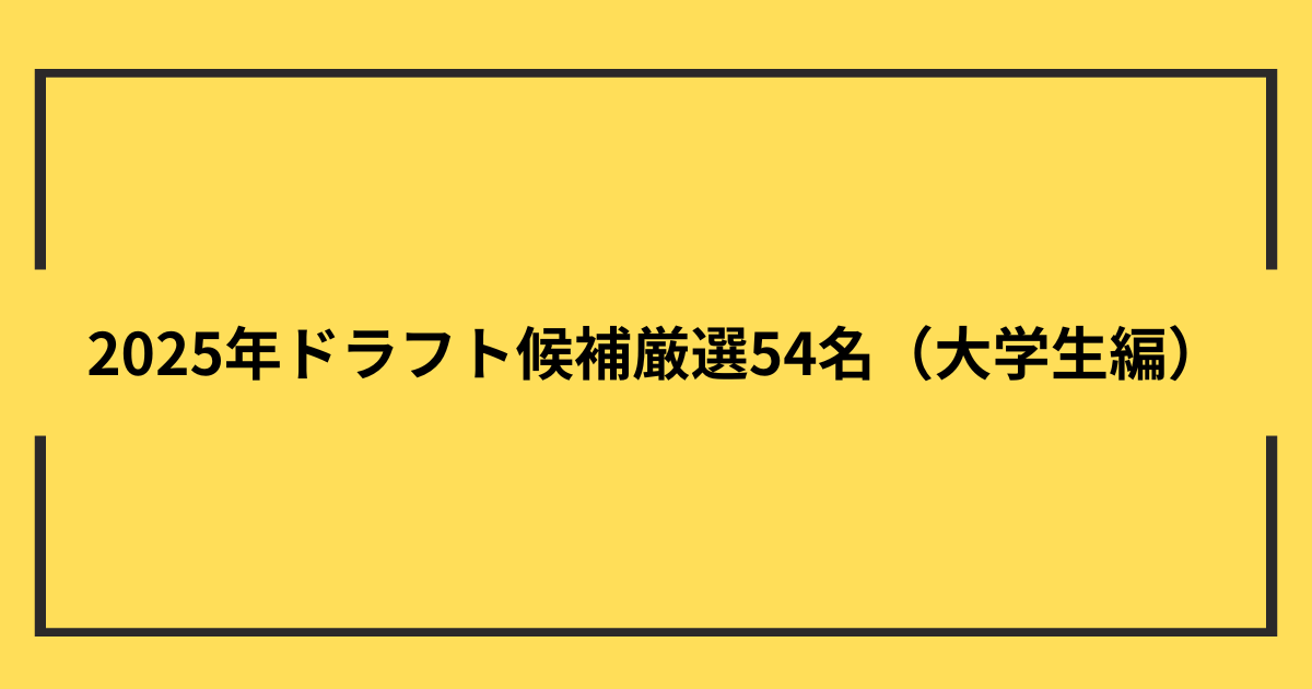 そこで今回は、私うえでぃーがドラフト候補を徹底調査しました。今回は大学生編です。ドラフト候補の中でも特に指名の可能性が高いと思う選手を独断と偏見で54名紹介します。