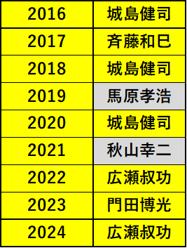 そこで香川選手の名前が挙がってもおかしくありません。田上秀則選手でも面白いですけどね。