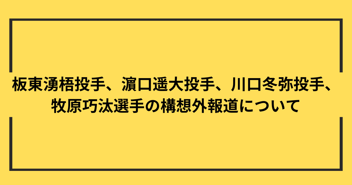 2025/10/27、福岡ソフトバンクホークスの板東湧梧投手、濵口遥大投手、川口冬弥投手、牧原巧汰選手が来季の構想から外れていることが明らかになりました。牧原巧汰選手は育成再契約の打診があるそうです。