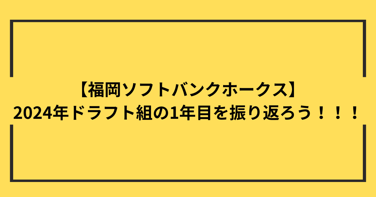 今回のテーマは「福岡ソフトバンクホークスの2024年ドラフト組」。