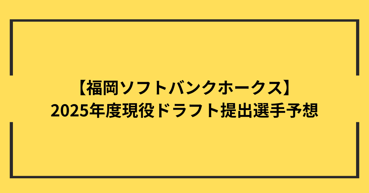 2025年度現役ドラフトで、ホークスは以下のような選手を獲得すると予想されます。
