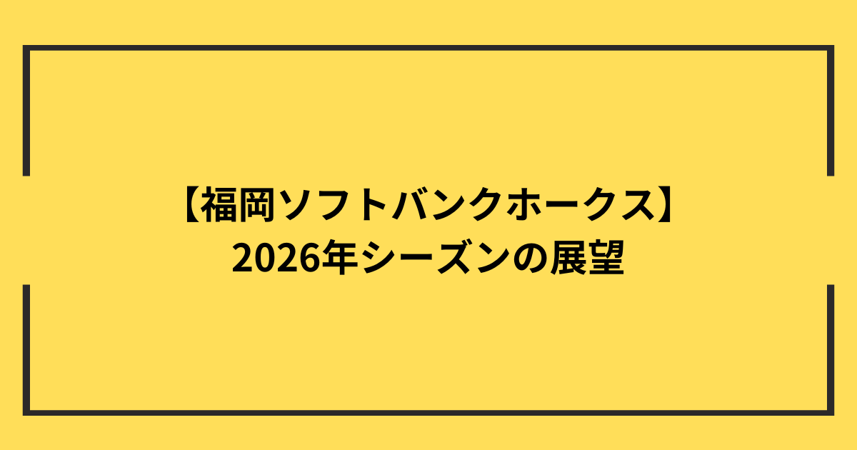 まずは来年。リーグ三連覇を達成するために、一ホークスファンである私が2026年度の展望を語ります。