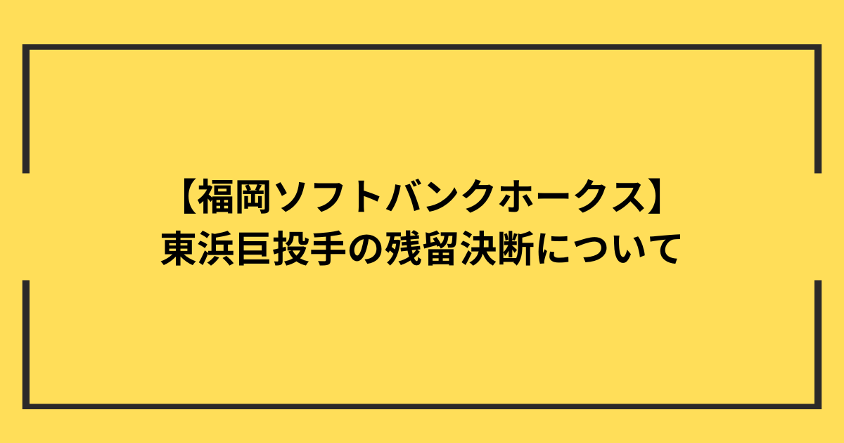 ホークス残留は東浜投手にとって決してベストとは言い切れないものの、ベターな選択にはなったかと思います。